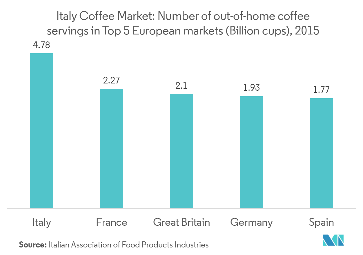 Italy's deep-rooted coffee culture is a primary driver of its coffee market growth. The country's traditional coffee customs, integrated into daily routines and social interactions, maintain a steady demand for premium coffee products. Italy's established espresso culture, café customs, and distinct regional preferences shape a market where coffee represents both a beverage and a cultural cornerstone. This cultural foundation supports various coffee formats, from traditional to modern, maintaining consumer loyalty and market expansion. According to the European Coffee Federation (ECF), coffee sales in Europe increased from EUR 2,456 million in 2022 to EUR 2,571 million in 2023, demonstrating growth sustained by strong consumption patterns in key markets like Italy [1]Source: European Coffee Federation (ECF), "European Coffee Report 2023/2024", www.ecf-coffee.org. These figures highlight how Italy's coffee culture influences both domestic consumption and broader European market dynamics, positioning the country as an influential force in the European coffee industry.
