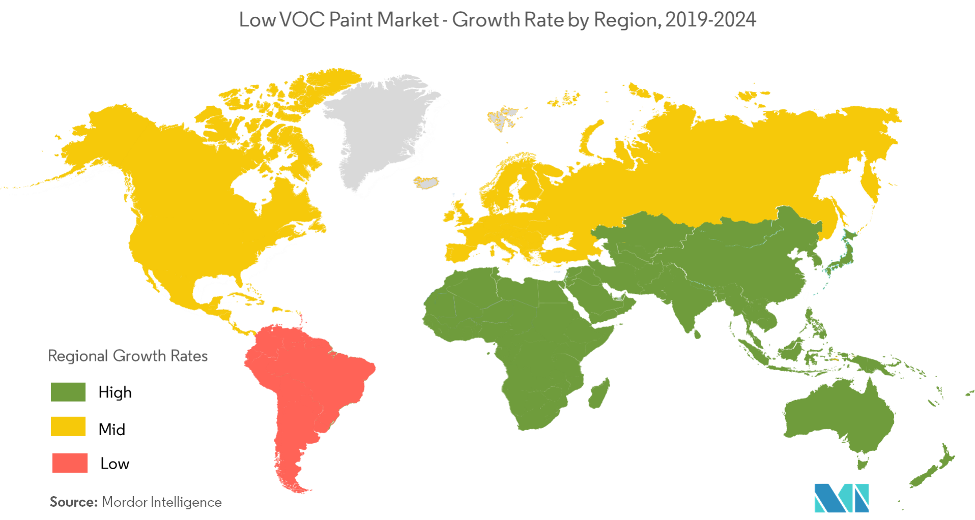 - Asia-Pacific region dominated the global market share. With growing investment in residential and commercial construction in countries such as India, China, the Philippines, Vietnam, and Indonesia, the market for low-VOC paints is expected to increase in the coming years.