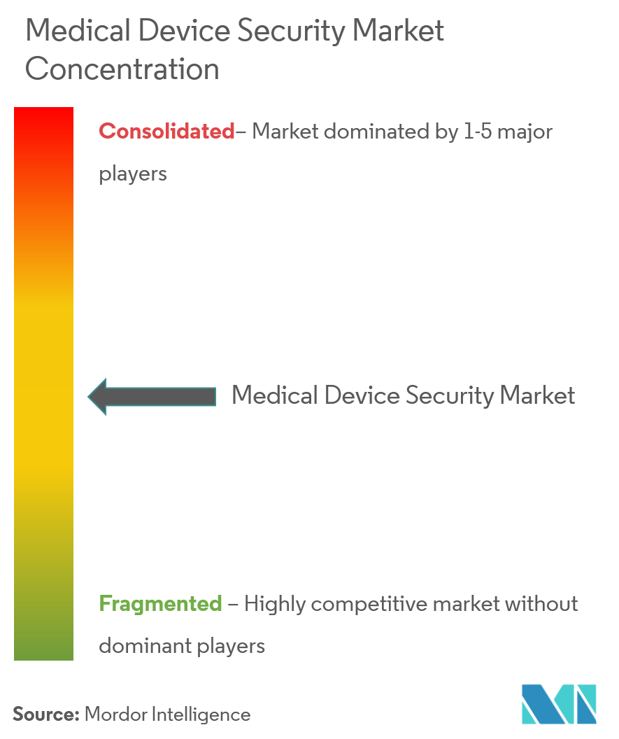 The medical device security market is highly fragmented, with the presence of major players like Check Point Software Technologies, Cisco Systems Inc., FireEye Inc., McAfee LLC, and Palo Alto Networks Inc. Players in the market are adopting strategies such as partnerships and acquisitions to enhance their product offerings and gain sustainable competitive advantage.