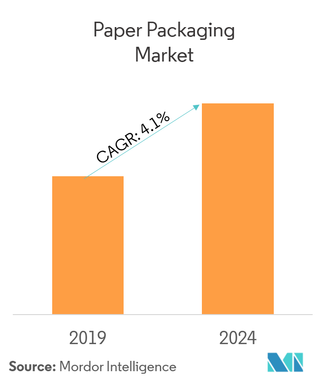 - By product, the paper packaging market size for folding cartons is projected to grow at a 5.38% CAGR between 2025-2030.