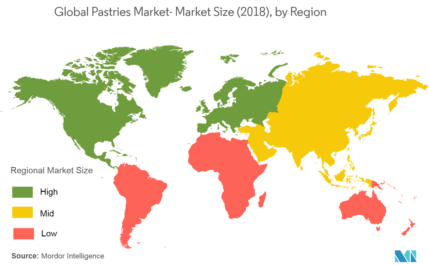 Europe’s pastries market leadership rests on a 39.60% revenue share in 2024, anchored by centuries-old patisserie culture and consumer willingness to pay premiums for provenance and craftsmanship. The broader EMEA bakery segment has been growing despite tightened environmental and sugar-reduction rules, accelerated recipe innovation, and sustainable packaging adoption. Energy-cost inflation and post-Brexit supply-chain recalibration remain operational challenges but also spur regional sourcing initiatives that reinforce local authenticity narratives.