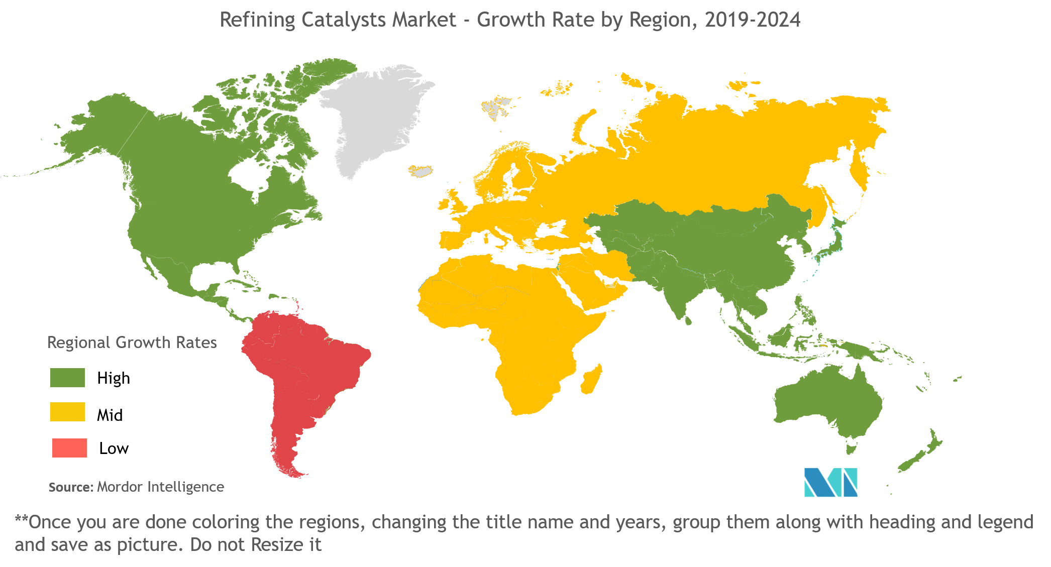 - Asia-Pacific region accounted for the largest market for refining catalysts, with almost half of the global share, and is also expected to be the fastest-growing market.