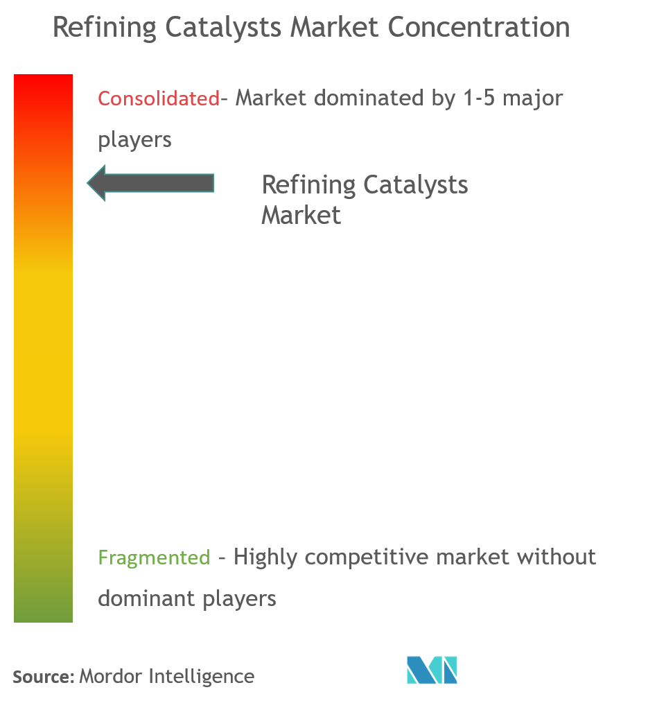 The refining catalysts market is partially consolidated in nature. The major players in this market include (not in any particular order) W. R. Grace & Co.-Conn, Albemarle Corporation, BASF SE, Axens, and Honeywell International, among others.