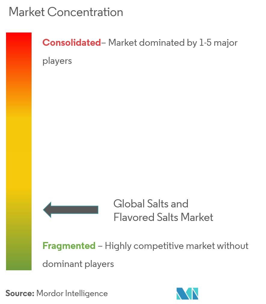 The salt market demonstrates moderate concentration, characterized by a diverse competitive landscape where established multinational companies operate alongside regional specialists and artisanal producers. These companies compete across various price segments and applications, each targeting specific market niches and consumer preferences. The industry structure reflects a balance between large-scale industrial production and specialized local manufacturing capabilities.
