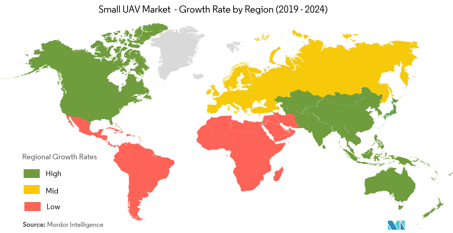 North America commanded 48.90% revenue in 2024, benefiting from multi-year contracts such as AeroVironment’s USD 990 million award and policy measures that mandated domestic sourcing. Blue UAS accreditation incentivized U.S. suppliers to internalize printed-circuit, battery, and optical supply chains, limiting exposure to foreign sanctions. Canada and Mexico adopted similar vetting regimes, sustaining cross-border demand inside the small UAV market.