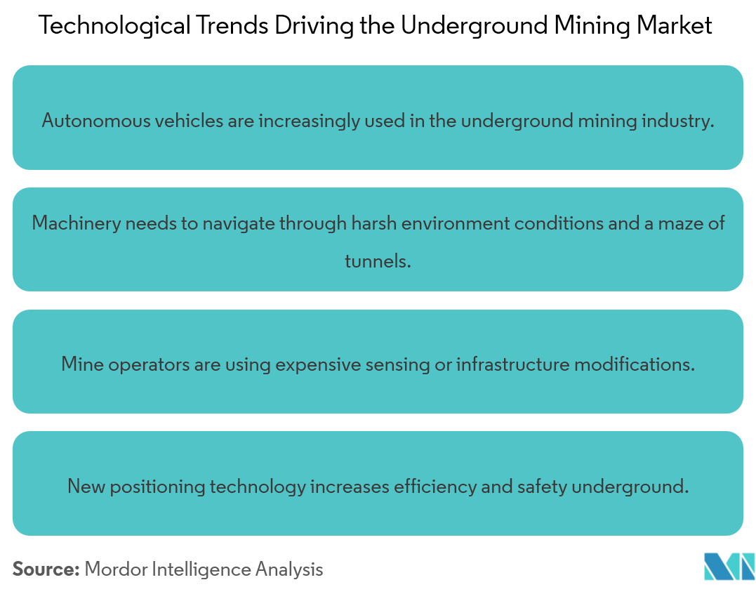 Mining-focused firms like Epiroc, Hexagon, and Sandvik tailor equipment and software to underground constraints. Epiroc’s acquisition spree in sensing and automation strengthens its underground analytics stack. Sandvik derives 69% of revenue from aftermarket parts and consumables, illustrating strategic emphasis on lifecycle services that lock in customers. Hexagon integrates mine-planning software with high-precision positioning, converting geological models directly into autonomous drill patterns. Start-ups such as KoBold Metals raised USD 537 million in 2025 to apply AI to exploration targeting, introducing competitive tension in early-stage discovery. Cybersecurity specialists emerge to secure OT networks, addressing gaps unserved by traditional IT providers.