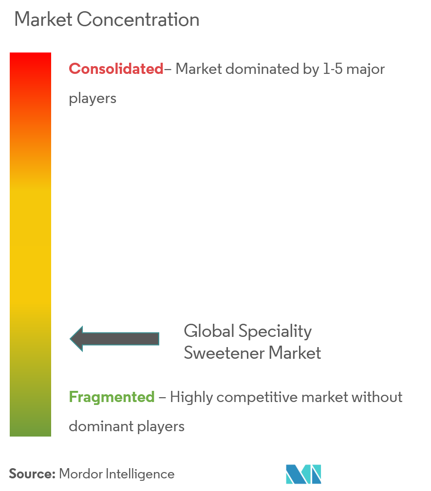 Tate & Lyle PLC, Cargill, Incorporated, Archer Daniels Midland Company, DuPont and Stevia First Corporation are the major companies operating in the Specialty Sweeteners Market.