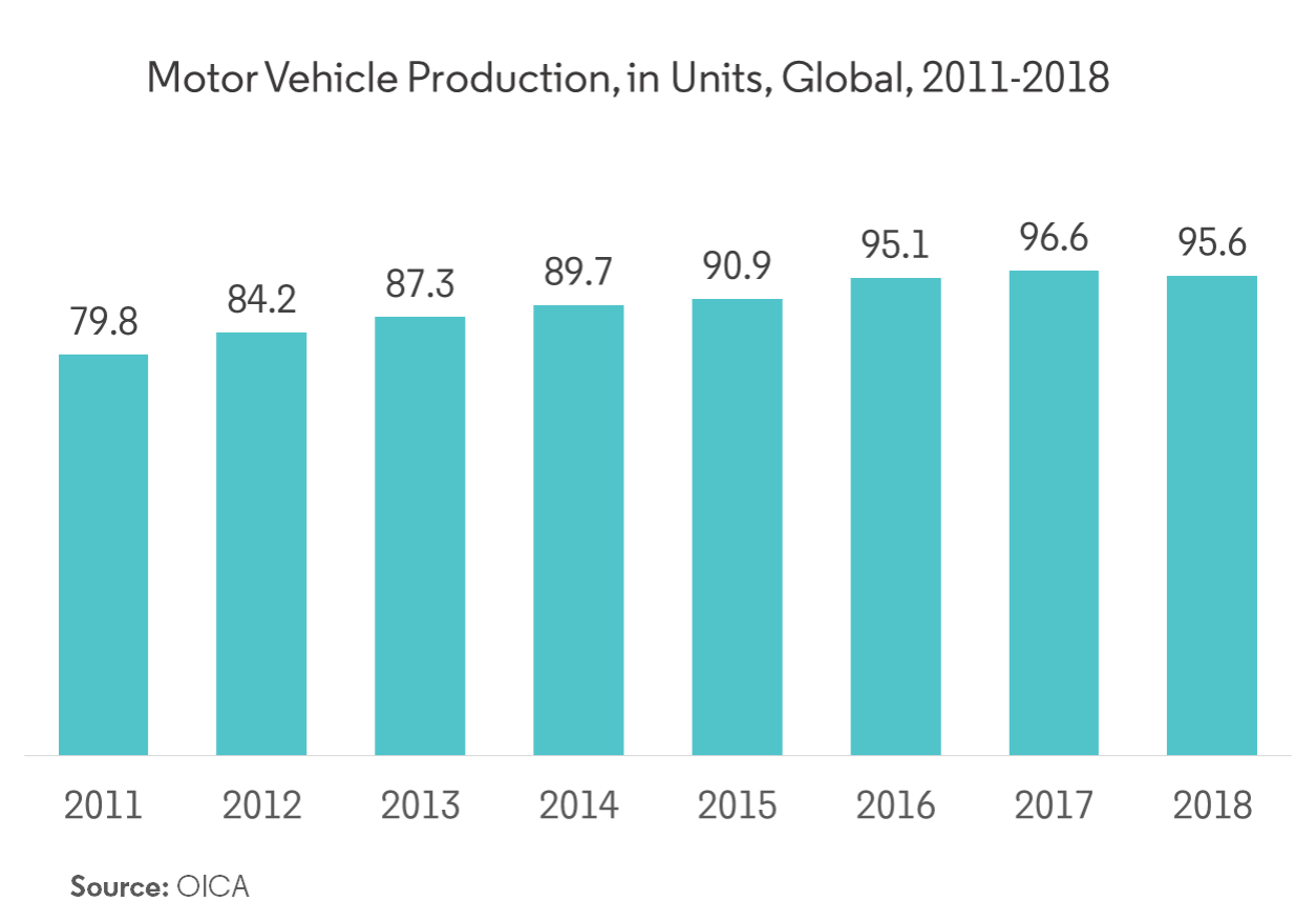 - The Government of India has planned to give USD 7.8 billion to the automobile and auto components sector in production-linked incentive schemes under the Department of Heavy Industries. Thus, the expansion of the automotive sector with the growing production of automobiles is anticipated to drive the market's growth over the forecast period.