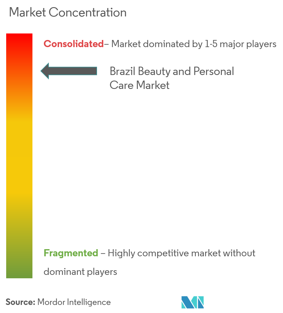 ブラジル美容市場は中程度の分散を示しています。この分野では複数の主要企業が事業を展開し、グローバルブランドと国内ブランドの両方が市場シェアを競う競争環境に貢献しています。多数の事業者の存在により、国内の多様な消費者嗜好とニーズに対応する様々な製品提供が確保されています。競争環境は、イノベーション、製品差別化、価格戦略などの要因によって形成されています。
