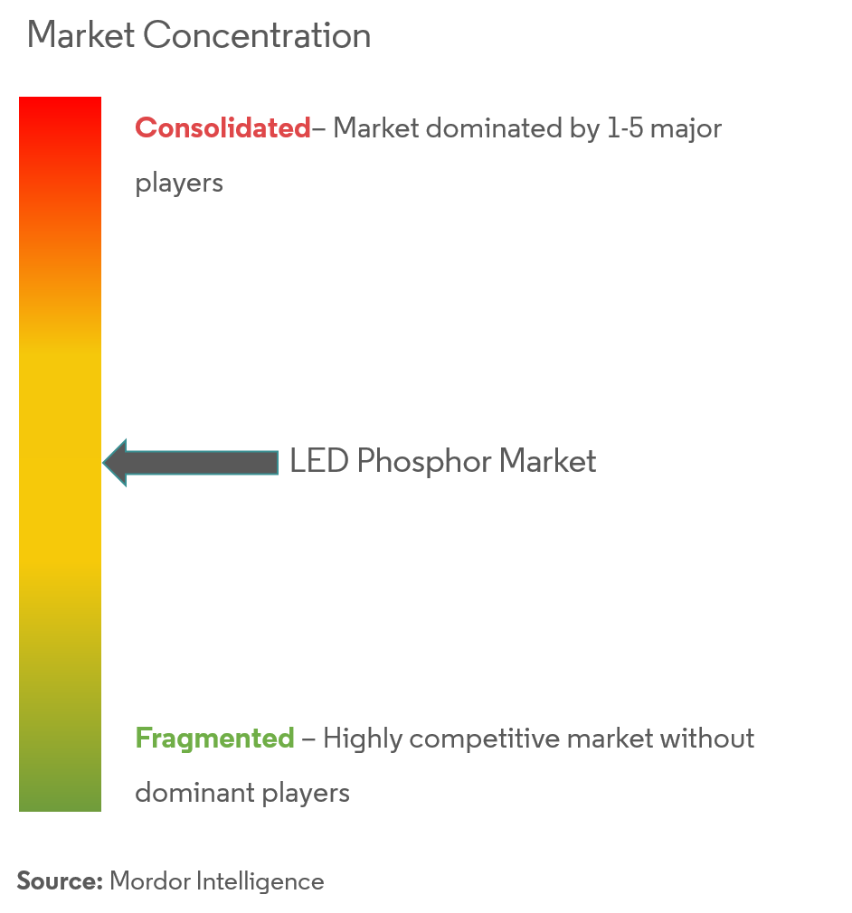 LED蛍光体市場は、Beijing Yuji International Co.Ltd.、Intematix Corporation、Phosphor Tech Corporation、Denka Co.Ltd.、Phosphor Tech Corporation、Denka Co.同市場のプレーヤーは、製品提供を強化し、持続可能な競争優位性を獲得するために、提携や買収などの戦略を採用している。