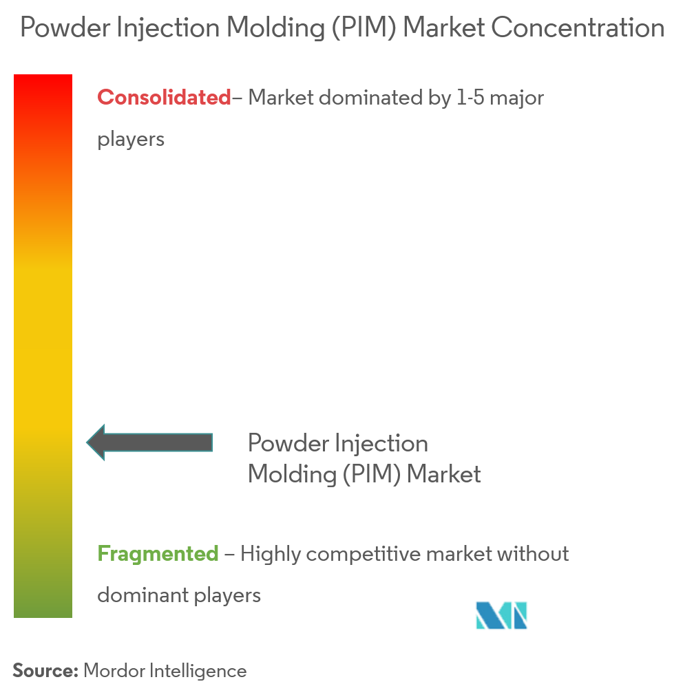 粉末射出成形(PIM)市場は細分化され、競争が激しく、数多くの企業が存在する。主要企業には、ARBURG、ARC Group Worldwide、GKN PLC、MPP、Indo-US MIM Tec Pvt. Ltdなどがある。