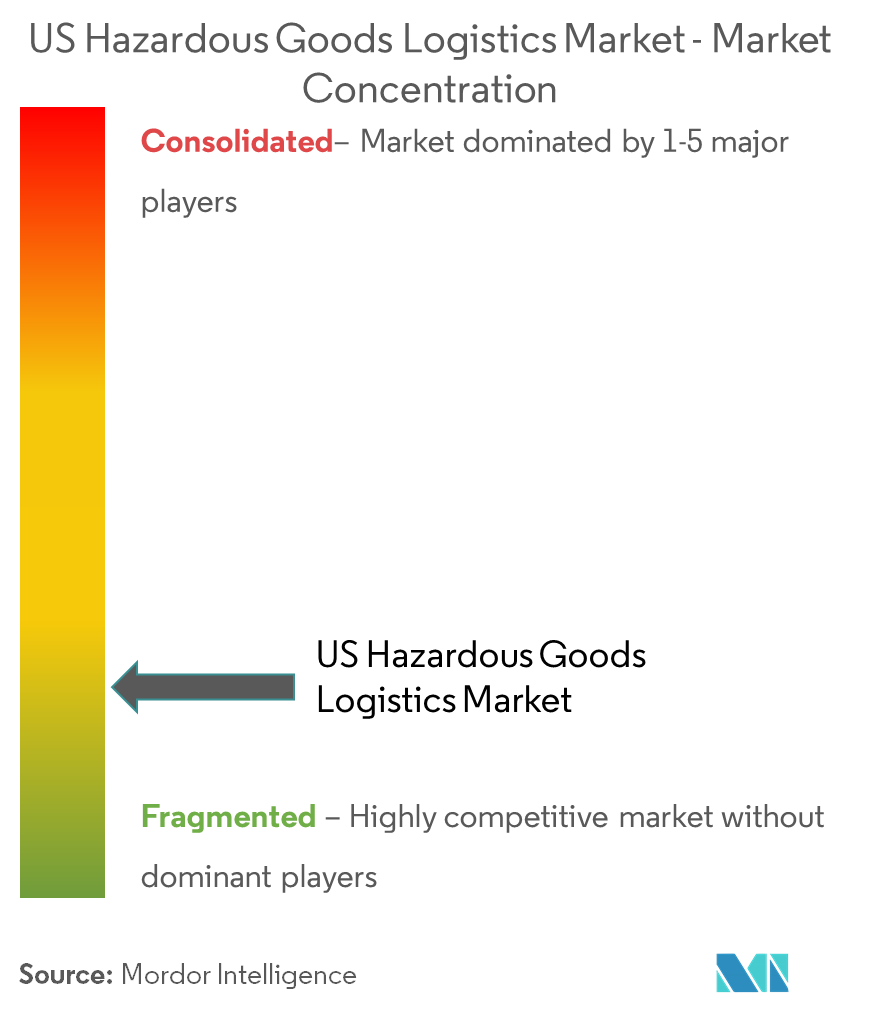 米国の危険物ロジスティクス市場は、国内外のプレーヤーで構成されている。多数のプレーヤーが市場に参入しているため、市場はやや断片化されている。Deutsche Post DHL Group、FedEx Corporation、XPO Logistics、Kuehne + Nagelは、米国の危険物ロジスティクス市場における主要プレーヤーである。同市場は上位10~15社で市場全体の3分の1を占めるなど、やや断片化されているため、同市場はてこ入れのために戦略的合併・買収に向かう可能性がある。また、米国における石油・ガス輸送の成長は、ロジスティクスと石油・ガス生産者のパートナーシップをさらに促進すると予想される。