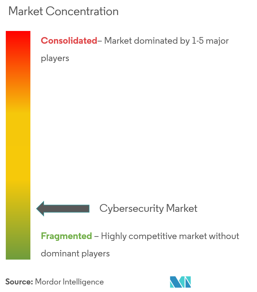 O mercado da cibersegurança compreende vários intervenientes globais e regionais que disputam a atenção num espaço de mercado bastante disputado. Embora o mercado apresente grandes barreiras à entrada de novos participantes, vários novos participantes conseguiram ganhar força. Crowdstrike Holdings Inc., Check Point Software Technologies Ltd, Cisco Systems Inc., Cyberark Software Ltd e Dell Technologies Inc.