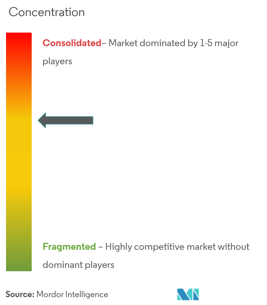 O mercado de gamificação é moderadamente competitivo e consiste em vários players importantes. Em termos de quota de mercado, alguns intervenientes importantes dominam atualmente o mercado. Estes grandes players, com uma quota de mercado proeminente, concentram-se na expansão da sua base de clientes em países estrangeiros. Estas empresas aproveitam iniciativas colaborativas estratégicas para aumentar a sua quota de mercado e rentabilidade.
