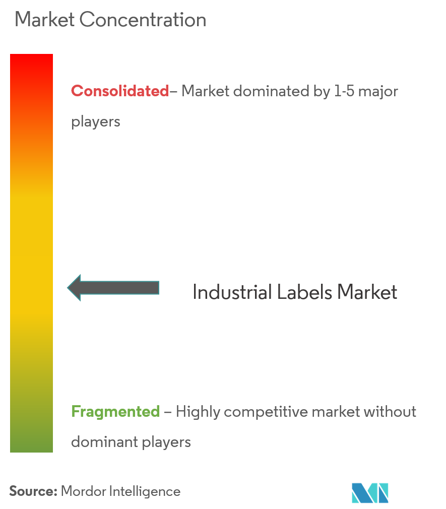 O mercado de etiquetas industriais mostra concentração moderada. Os principais players Avery Dennison, CCL Industries e 3M coletivamente comandam participação significativa via redes de fabricação globais e integração vertical. Seu foco combinado em etiquetas inteligentes, substratos sustentáveis e sistemas de impressão-aplicação turnkey fortifica barreiras à entrada.