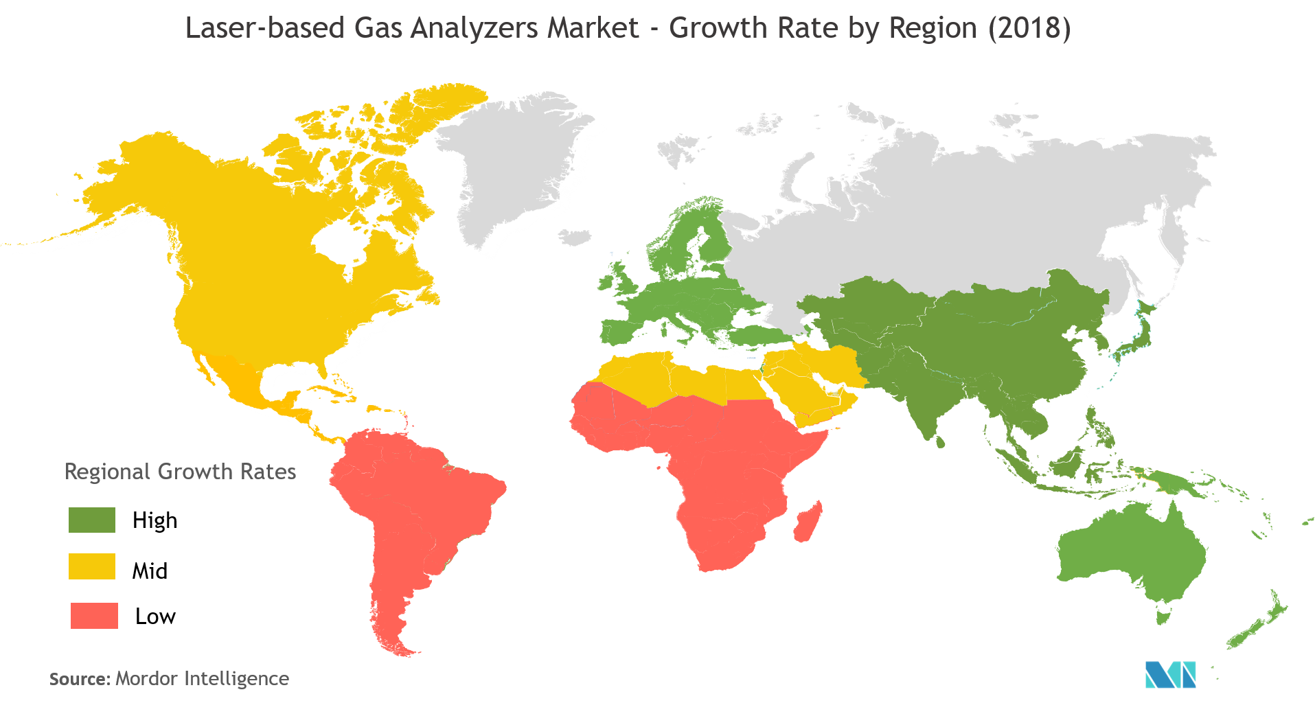 - O desenvolvimento das indústrias na região está impulsionando o crescimento dos analisadores de gases, devido à sua utilização na indústria de petróleo e gás, como processos de monitoramento, aumento da segurança, maior eficiência e qualidade. Assim, as refinarias da região estão implantando analisadores de gases nas usinas.