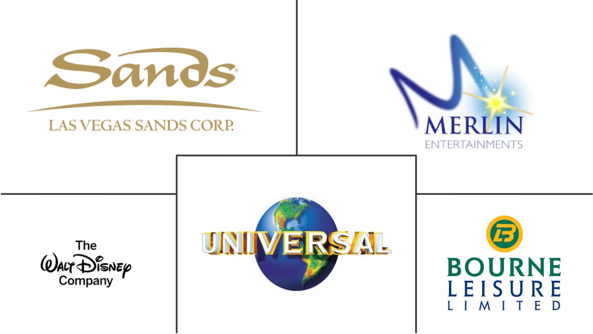 The Walt Disney Company, Universal Studios, Las Vegas Sands, Bourne Leisure Holdings Limited e Merlin Entertainment Group são as principais empresas que operam no Mercado de Serviços de Recreação.