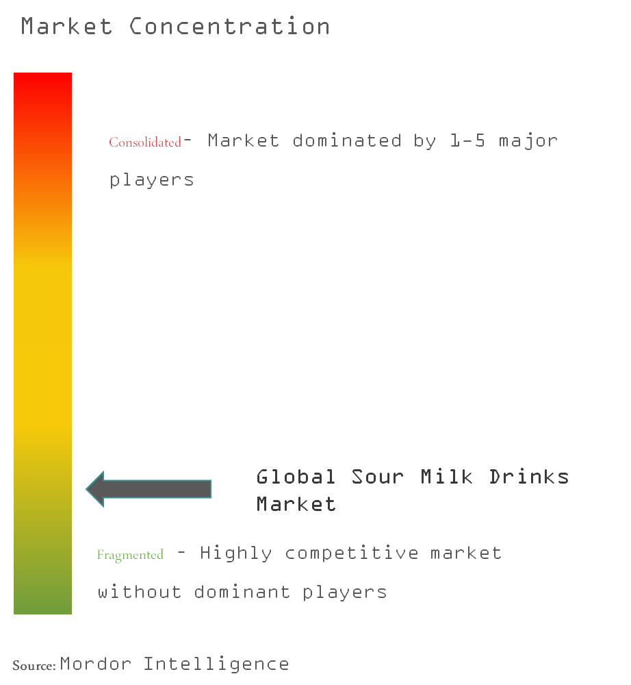 O mercado de bebidas com leite azedo é fragmentado, com as cinco principais empresas ocupando 12,44%. Os principais players deste mercado são Almarai Company, Dairy Farmers of America Inc., Gujarat Co-operative Milk Marketing Federation Ltd, Lifeway Foods Inc. e Nestlé SA (classificados em ordem alfabética).