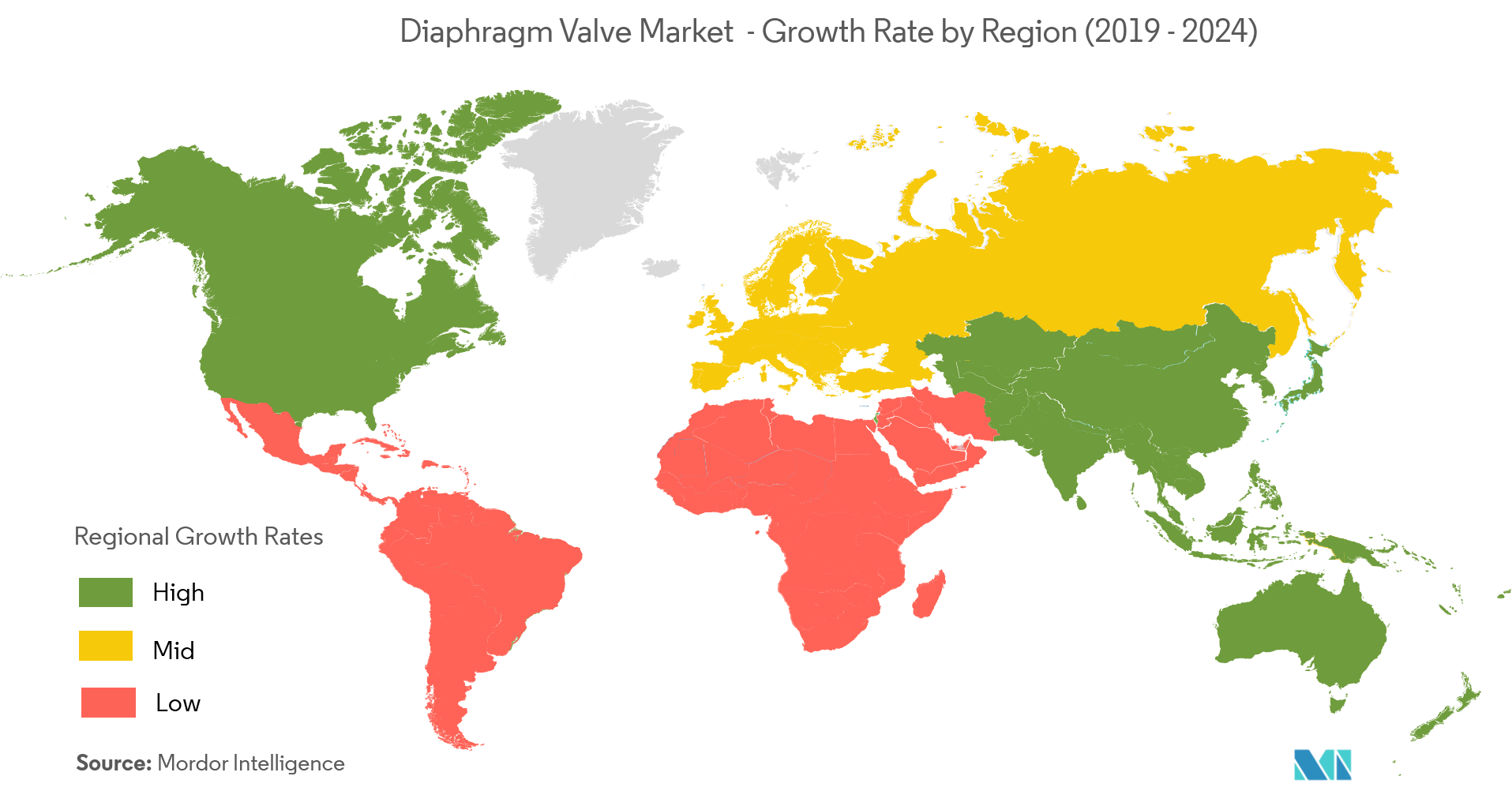 В 2024 году на долю Северной Америки будет приходиться наибольшая доля рынка мембранных клапанов.