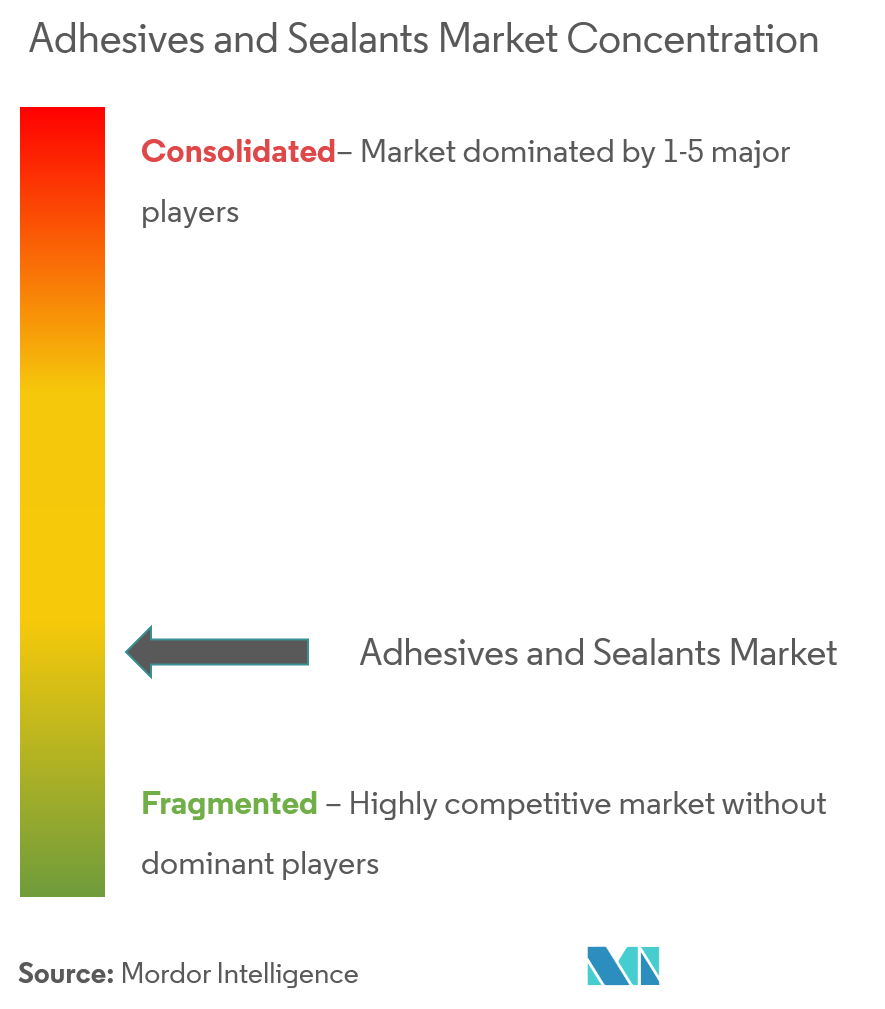 Thị trường chất kết dính và chất bịt kín toàn cầu có tính chất phân mảnh. Một số công ty lớn trên thị trường bao gồm Henkel AG Co. KGaA, 3M, HB Fuller Company., Arkema và Sika AG, cùng với các công ty khác (không theo thứ tự cụ thể).