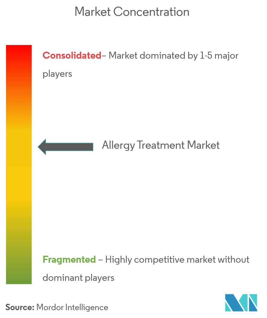 Thị trường chẩn đoán dị ứng bị phân mảnh, cạnh tranh và bao gồm một số người tham gia thị trường. Hầu hết các sản phẩm điều trị dị ứng đều được sản xuất bởi các công ty lớn trên toàn cầu. Với nhiều kinh phí hơn cho việc nghiên cứu và hệ thống phân phối tốt hơn, những công ty dẫn đầu thị trường đã xác lập được vị thế của mình trên thị trường. Một số công ty tham gia thị trường là Johnson Johnson, Sanofi, GlaxoSmithKline, F. Hoffmann-La Roche Ltd và Leti Pharma.