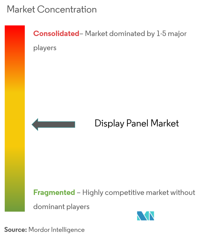 Thị trường bảng hiển thị toàn cầu rất cạnh tranh. Thị trường tập trung cao độ do có nhiều người chơi lớn và nhỏ khác nhau. Tất cả những người chơi chính đều chiếm thị phần lớn và tập trung vào việc mở rộng cơ sở tiêu dùng trên toàn thế giới của họ. Một số công ty quan trọng trên thị trường là AUO Corporation, BOE Japan Co. Ltd, Innolux Corporation, LG Electronics, Samsung Electronics Co. Ltd, Panasonic Corporation, v.v. Các công ty đang tăng thị phần bằng cách hình thành nhiều quan hệ đối tác và đầu tư giới thiệu các sản phẩm mới để đạt được lợi thế cạnh tranh trong giai đoạn dự báo.