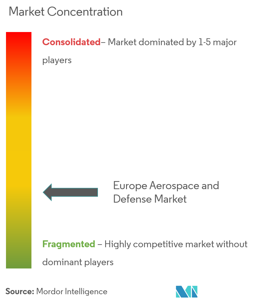 Tình trạng bất ổn địa chính trị ngày càng tăng ở một số quốc gia đang góp phần tạo ra môi trường an ninh mới nổi, dẫn đến nhu cầu về máy bay, máy bay không người lái và vệ tinh tiên tiến ngày càng tăng. Để đảm bảo các hợp đồng dài hạn và cải thiện thị phần của mình, các công ty đang đầu tư đáng kể vào hoạt động RD để cung cấp các sản phẩm phức tạp. Hoạt động RD liên tục đã thúc đẩy những tiến bộ công nghệ về nền tảng cũng như các sản phẩm và giải pháp liên quan trên thị trường hàng không vũ trụ và quốc phòng Châu Âu. Thị trường bị phân mảnh vừa phải, với một số công ty toàn cầu, bao gồm Airbus SE, BAE Systems PLC, Leonardo SpA, Safran SA và Tập đoàn Thales.