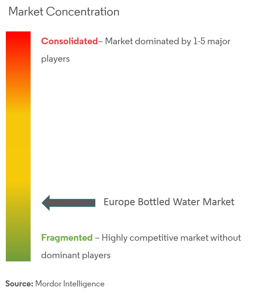 Thị trường nước đóng chai châu Âu có tính cạnh tranh cao với các doanh nghiệp trong nước và quốc tế. Một số công ty nổi tiếng toàn cầu trên thị trường bao gồm Danone SA, Gerolsteiner Brunnen Gmbh Co. KG, The Coca-Cola Company, PepsiCo Inc., Nestle SA., Ferrarelle Spa, RheinfelsQuellen H. Hovelmann GmbH Co. KG và Highland Spring Limited, trong số những người khác. Những công ty này cùng với các công ty trong nước khác đang cố gắng giành thị phần bằng cách giới thiệu các biến thể sản phẩm mới có sự khác biệt đáng kể so với các sản phẩm hiện có. Các thị trường khu vực khác nhau được nắm giữ bởi những người chơi độc lập là những người chơi địa phương tại thị trường bản địa của họ. Những người chơi này có quyền truy cập vào các kênh phân phối nổi bật để duy trì và cải thiện tính sẵn có của sản phẩm của họ. Nhiều thương hiệu cũng đang chú trọng vào việc cải tiến bao bì như chai không nhãn mác, thân thiện với môi trường và bền vững, từ đó thu hút sự chú ý của lượng khách hàng này.