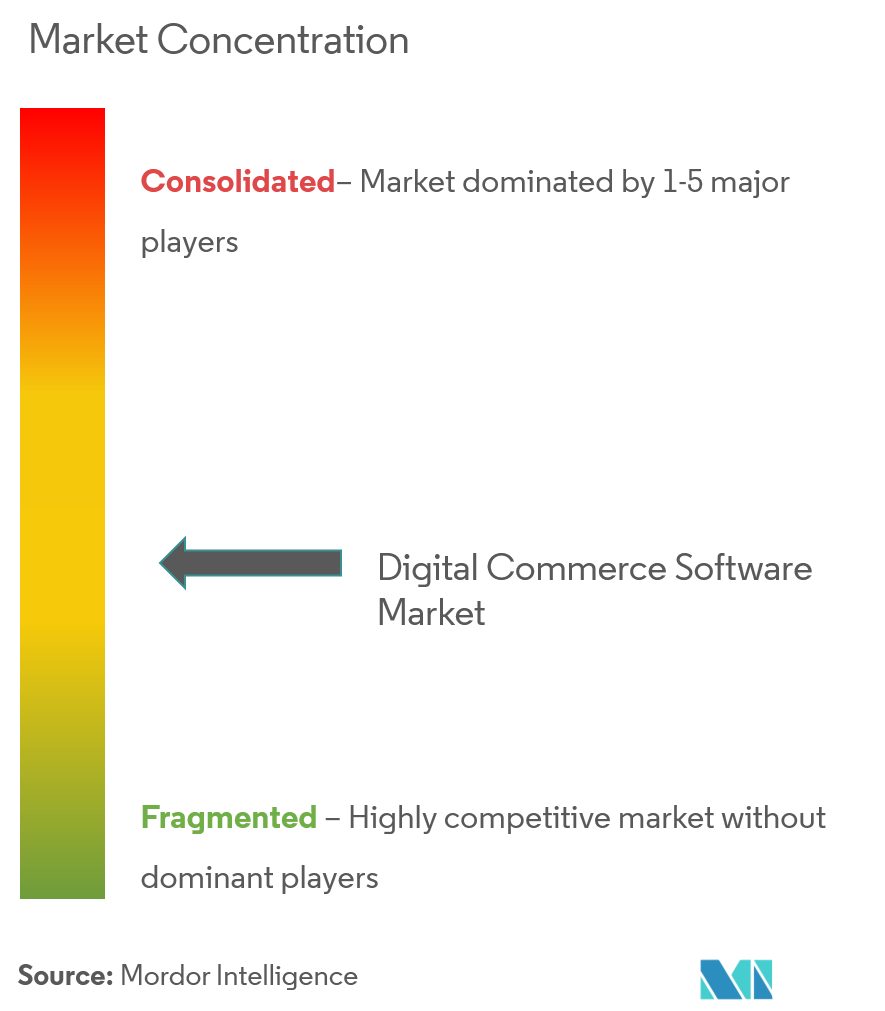 Thị trường phần mềm thương mại kỹ thuật số có tính chất phân mảnh và cạnh tranh cao. Một số công ty chủ chốt là SAP SE, IBM Corporation, Oracle Corporation, Demandware Inc., NetSuite Inc., Sappi Limited, Intershop, Volusion Inc., eBay Enterprise, TCS Ltd, Cleverbridge Inc., MarketLive Inc., và Shopify Inc., trong số đó người khác. Ra mắt sản phẩm, chi phí nghiên cứu và phát triển cao, hợp tác và mua lại, v.v., là những chiến lược tăng trưởng chính mà các công ty này áp dụng để duy trì sự cạnh tranh khốc liệt.