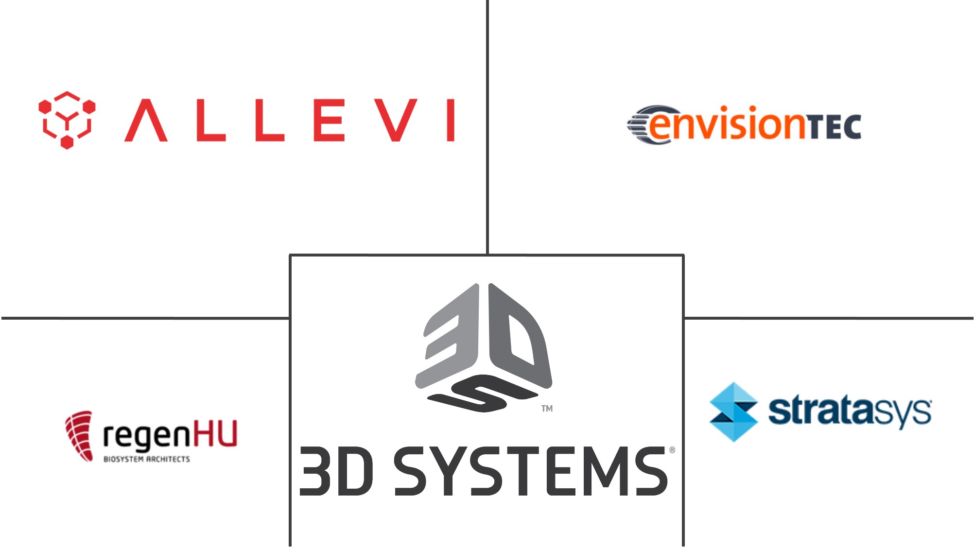 3D Systems Inc, EnvisionTEC GMBH, regenHU Ltd, Allevi, Stratasys Ltd là những công ty lớn hoạt động trong Thị trường Sản xuất Phụ gia Chăm sóc Sức khỏe (In 3D).