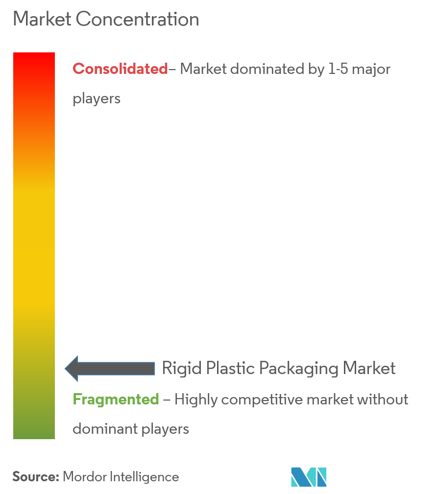 Thị trường bao bì nhựa cứng đang bị phân mảnh. Do có sự hiện diện của nhiều người chơi nên thị trường có sự cạnh tranh gay gắt. Các công ty tập trung vào việc cung cấp các loại tôn nhẹ, hiệu suất cao để giảm chi phí và cải thiện hiệu suất đóng gói. Một số công ty lớn trên thị trường là Amcor Group GmbH, Alpla Werke Alwin Lehner GmbH Co KG, Silgan Holdings Inc., Sealed Air Corporation, Plastipak Holding Inc., Sonoco Products Company và Graham Packaging Company Inc., cùng nhiều công ty khác.