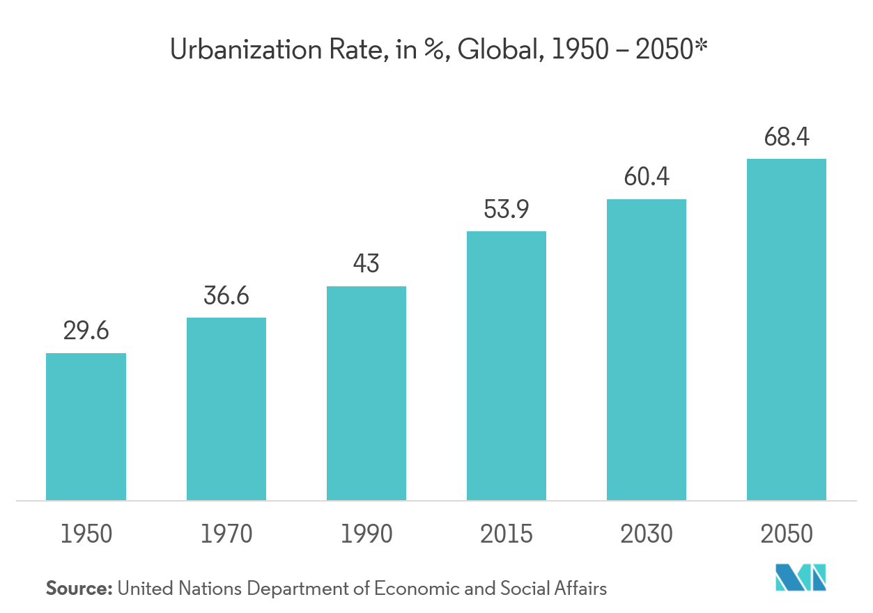 - Các chính sách và sự hợp tác của chính phủ đối với sự phát triển của các thành phố dự kiến sẽ thúc đẩy thị trường được nghiên cứu. Ví dụ Sàn giao dịch dữ liệu đô thị Ấn Độ được thành lập với sự cộng tác của Phái đoàn Thành phố thông minh và Viện Khoa học Ấn Độ (IISc) ở Bengaluru. IUDX cung cấp giao diện thống nhất cho nhà cung cấp và người dùng dữ liệu, bao gồm cả ULB, để chia sẻ, yêu cầu và truy cập các tập dữ liệu liên quan đến thành phố, chính quyền đô thị và cung cấp dịch vụ đô thị. IUDX là một nền tảng phần mềm nguồn mở cho phép trao đổi dữ liệu an toàn, xác thực và được quản lý giữa các nền tảng dữ liệu khác nhau, các ứng dụng được cấp phép và chứng nhận của bên thứ ba cũng như các nguồn khác. Khi số lượng thành phố sử dụng IUDX tăng lên, điều này sẽ dẫn đến việc chia sẻ dữ liệu thống nhất và trơn tru giữa người sản xuất dữ liệu và người tiêu dùng trên khắp khu vực thành thị của Ấn Độ.